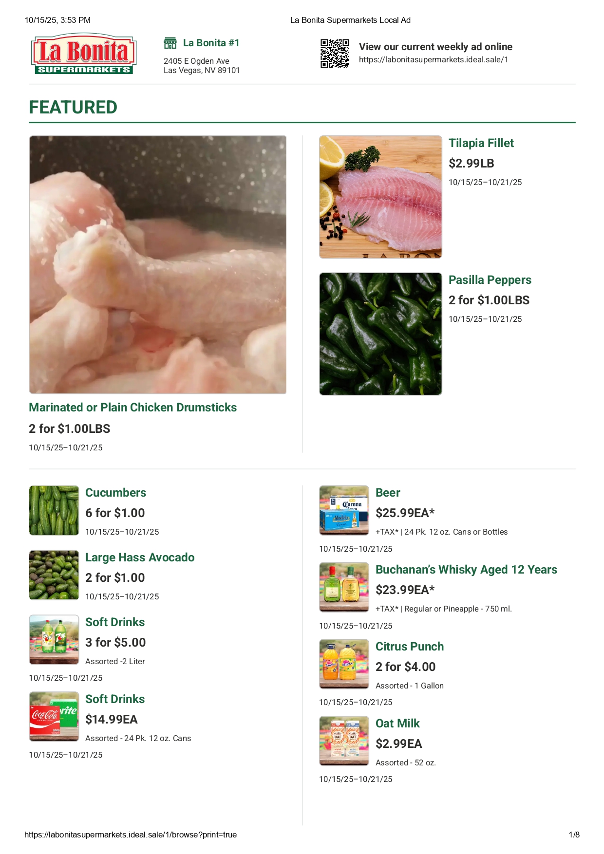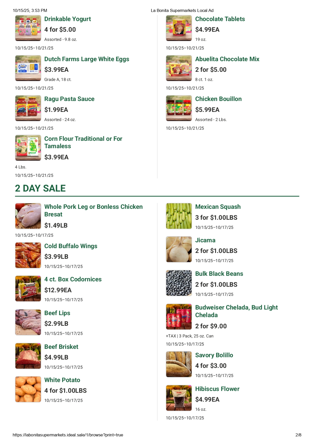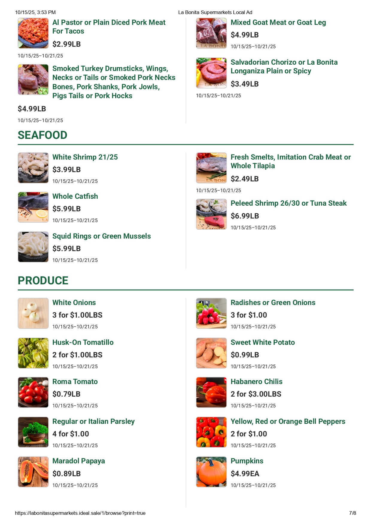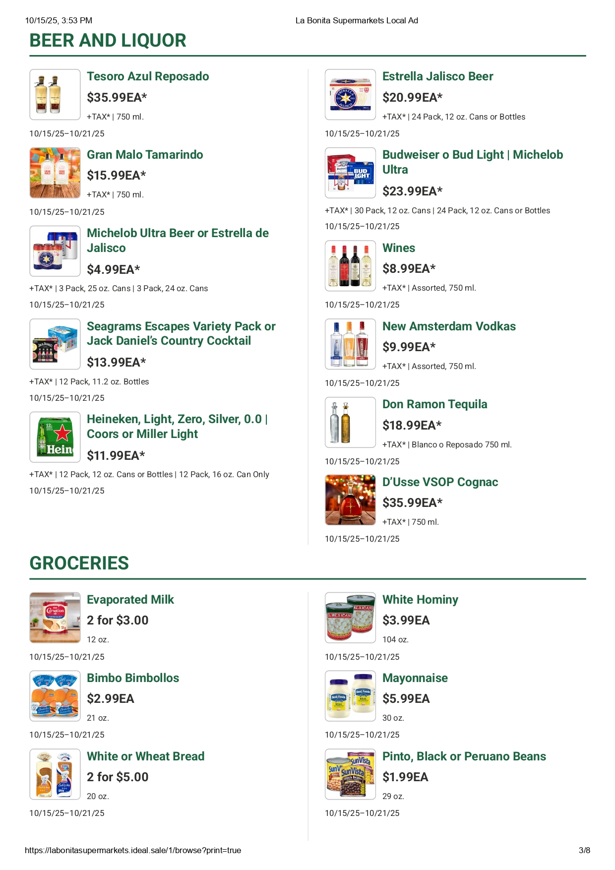 The LaBonita weekly ad for 15– October-21,2025 is here. This week’s flyer has great deals on fresh food, meat, and household items. Save big on your grocery shopping with discounts you don’t want to miss. Check the flyer to find the best prices at your local LaBonita store.